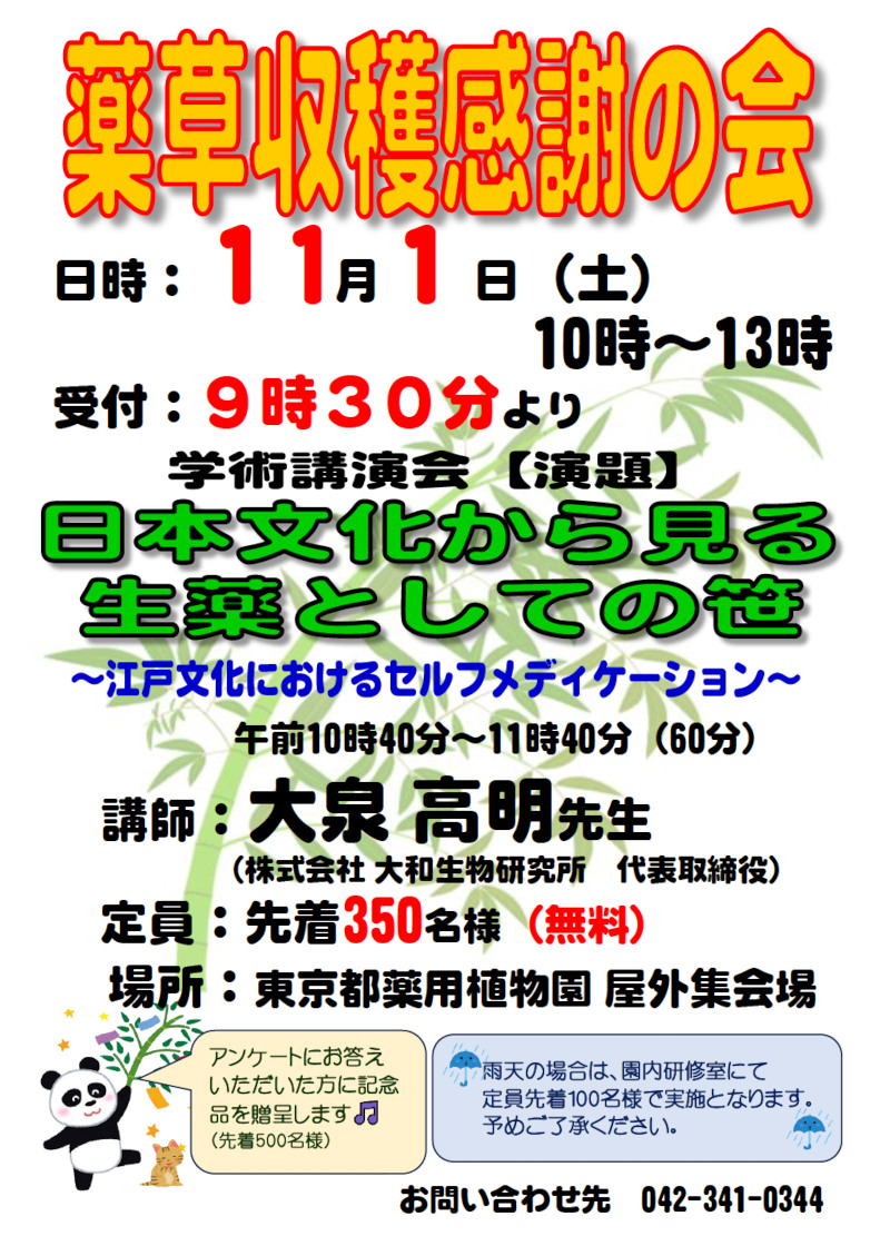 公益社団法人東京生薬協会は、優良生薬の確保とその振興を図り、生薬業界の発展・国民の保健衛生の向上・公共の福祉への貢献を目的に活動している団体です。薬用植物の栽培育成、東京都薬用植物園の管理受託、漢方薬・薬草・ハーブ等に関するイベントなどを通じ、皆様の生活にも貢献してまいります。