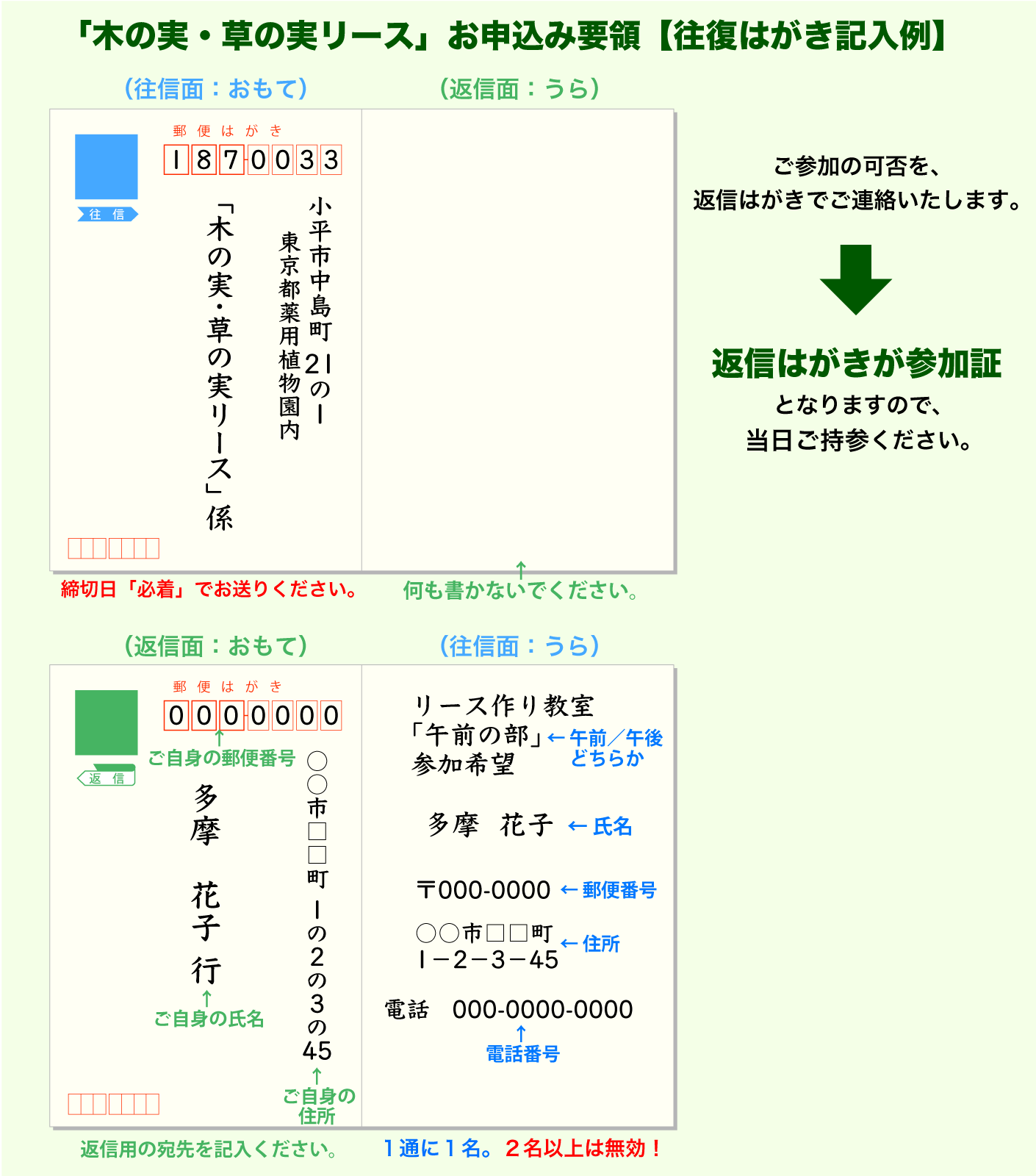 *お申込みは午前午後どちらか、往復はがき1通につき1名です。