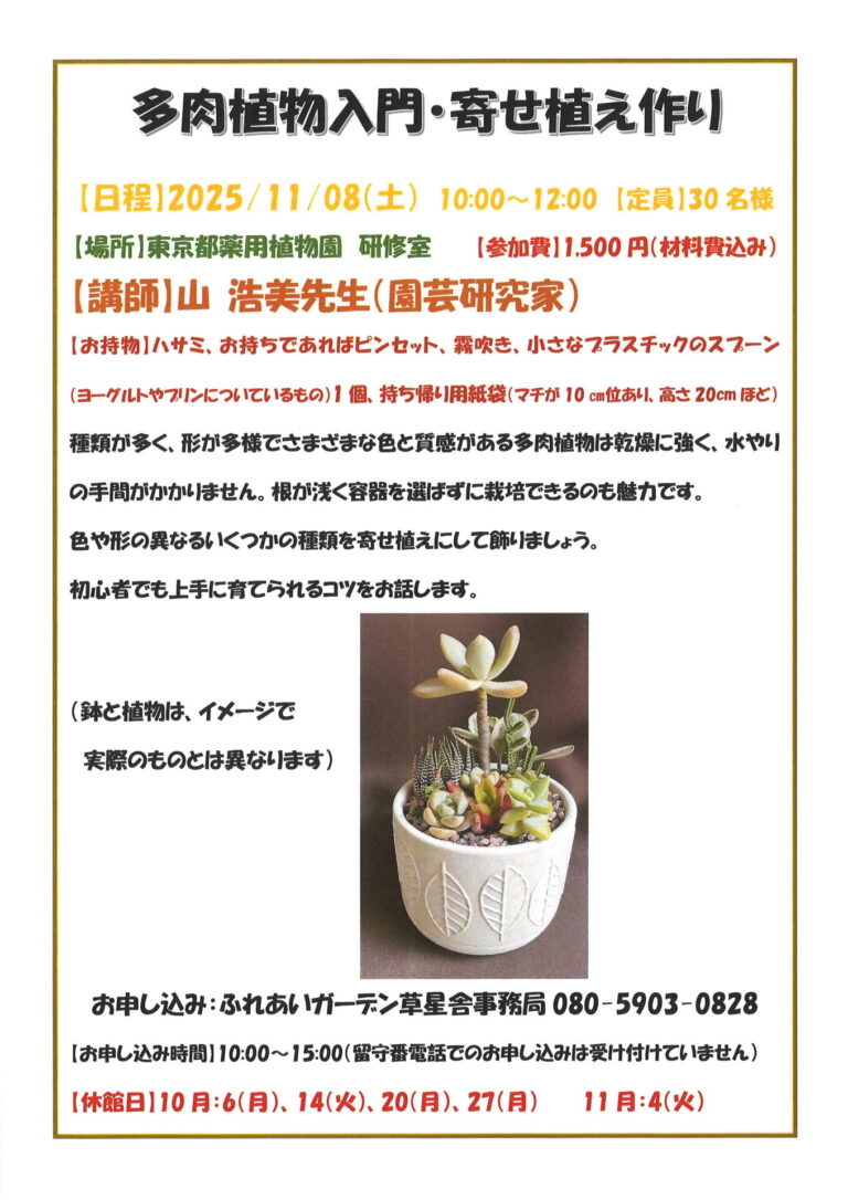 東京都小平市中島町21-1 東京都薬用植物園内