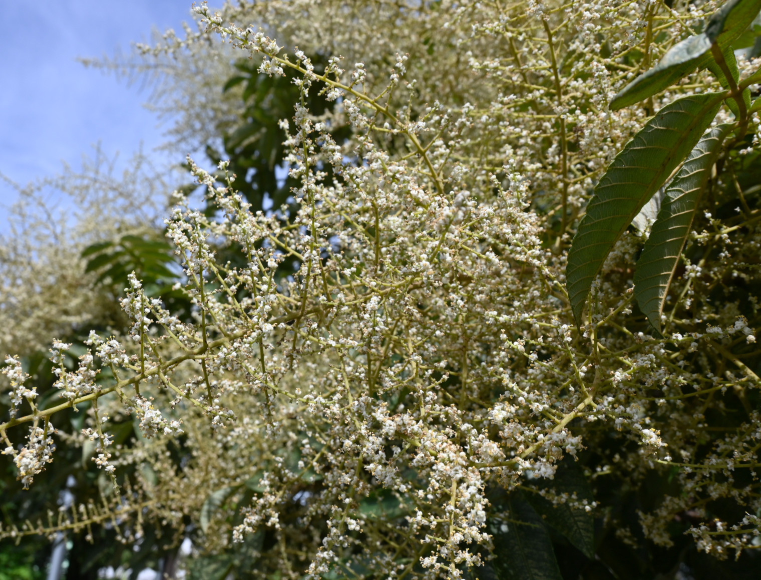 花は夏の終わりから秋に咲き、微細なクリーム色の花が、大きな円錐花序となって、各枝の先につきます。