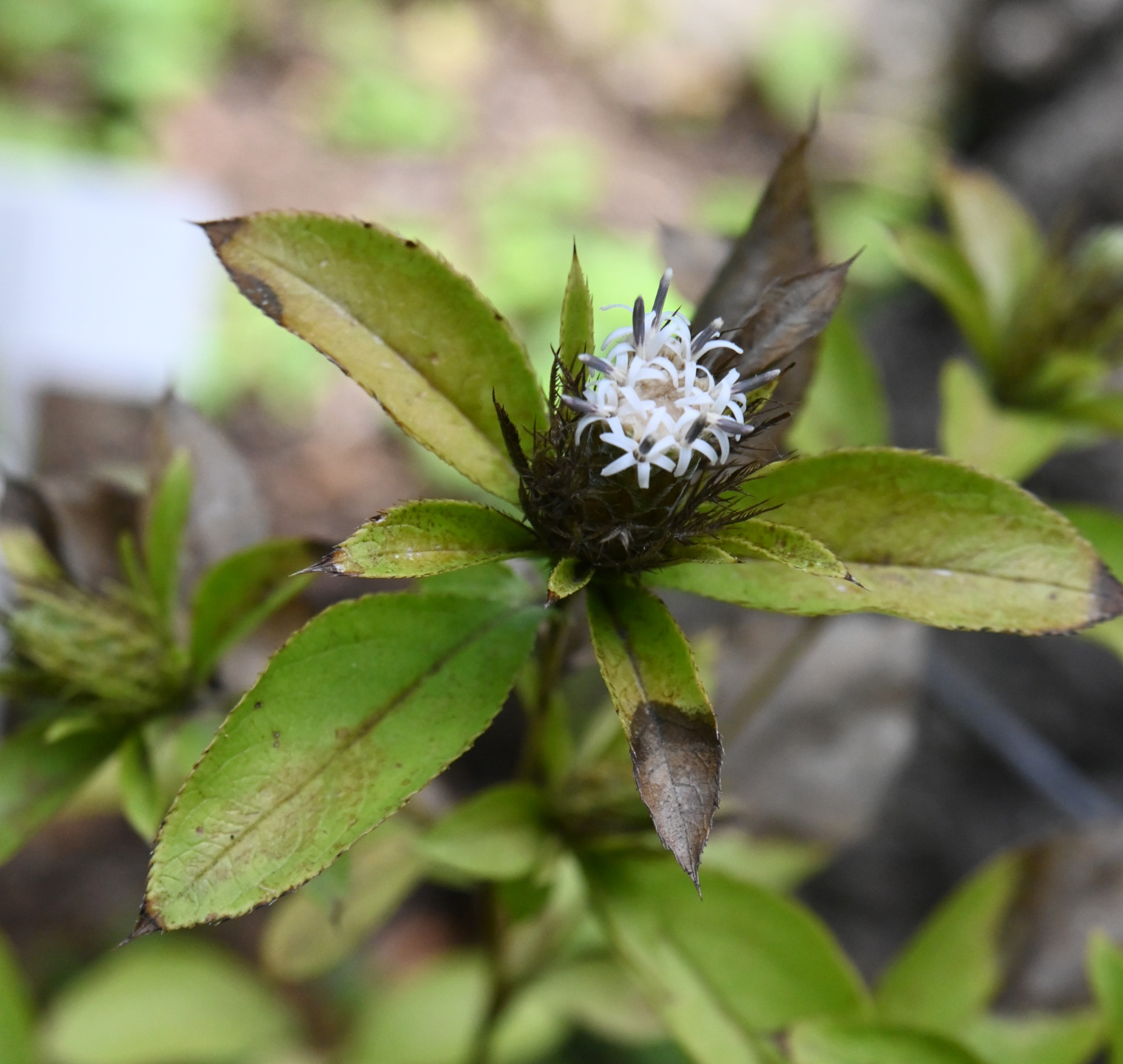 秋に咲く頭花は筒状花のみからなり白色、ときにピンク色を帯び、頭花を囲む総苞片が魚の骨状に羽状全裂することが本属の特徴です。