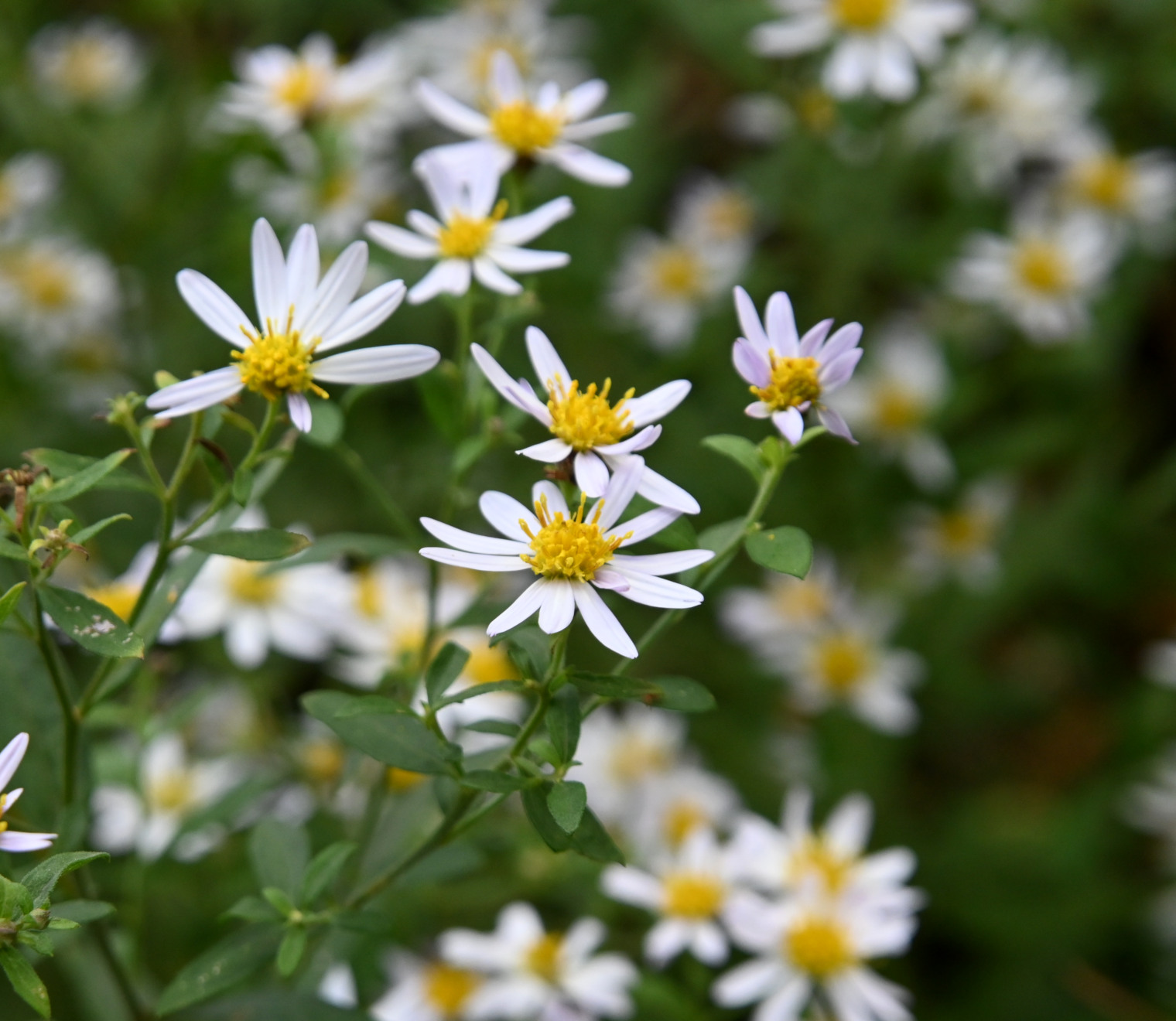 山野の、比較的乾いた場所にみられる多年草で、いわゆる「野菊」の中でもポピュラーなものです。よく似た「野菊」のユウガギクやカントウヨメナに比較して、頭花が集まって咲く傾向があり、個々の筒状花には、長さ4-5mmの明瞭な冠毛が確認できます。また、葉の両面がざらつくことも特徴です。 舌状花の色は淡い紫色です。個体差や日照条件などによって花色の濃さには変化があり、白色に近いものから、藤紫色まで色に幅があります。 園芸種のコンギク(紺菊)は、本種の中から色が濃く鮮やかなものを育成した系統です。 【北海道~九州】