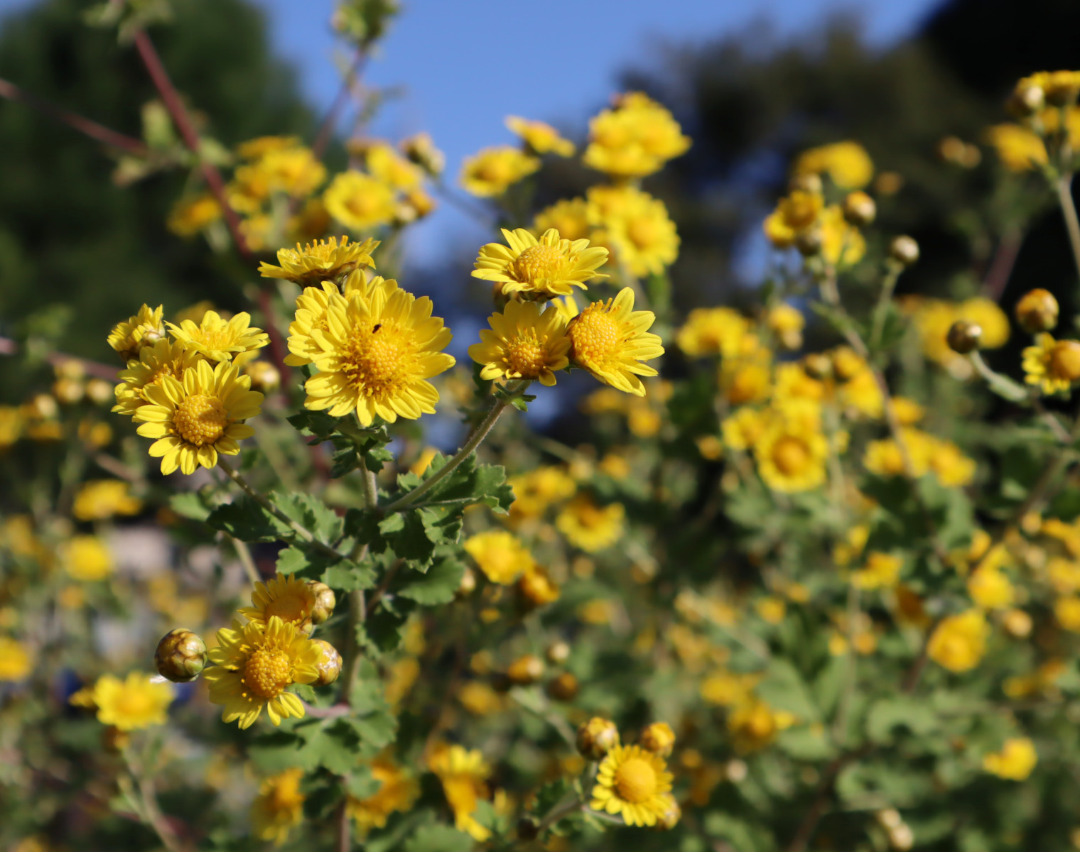 頭花は鮮黄色、小輪多花性で、観賞用のキクの原種のひとつと考えられています。