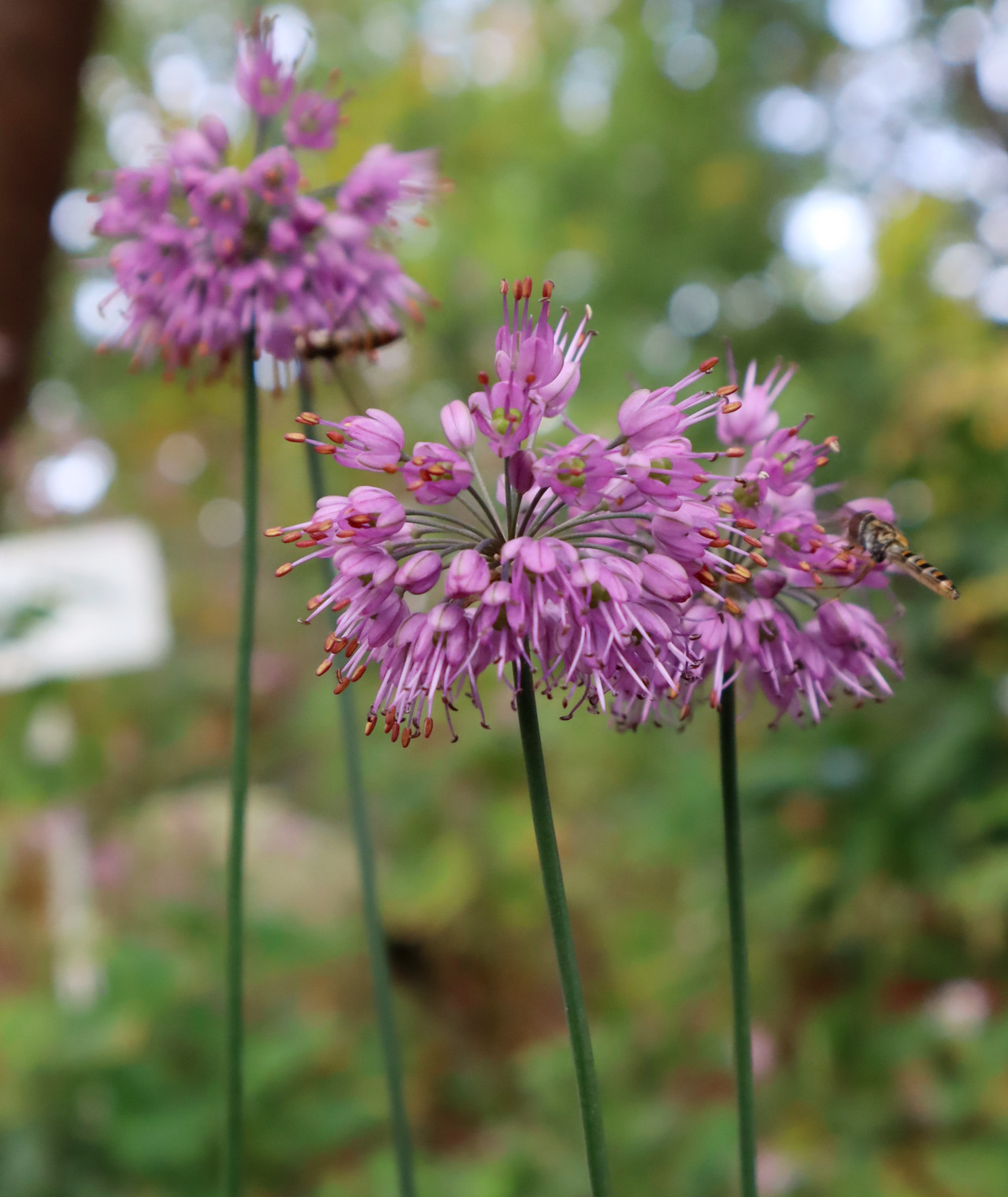 食用にするラッキョウは中国原産で、小花柄が長く、おしべの花糸基部にはっきりした歯牙があることなどが形態的な違いです。ラッキョウは民間薬原料植物区(樽植)で開花中です。