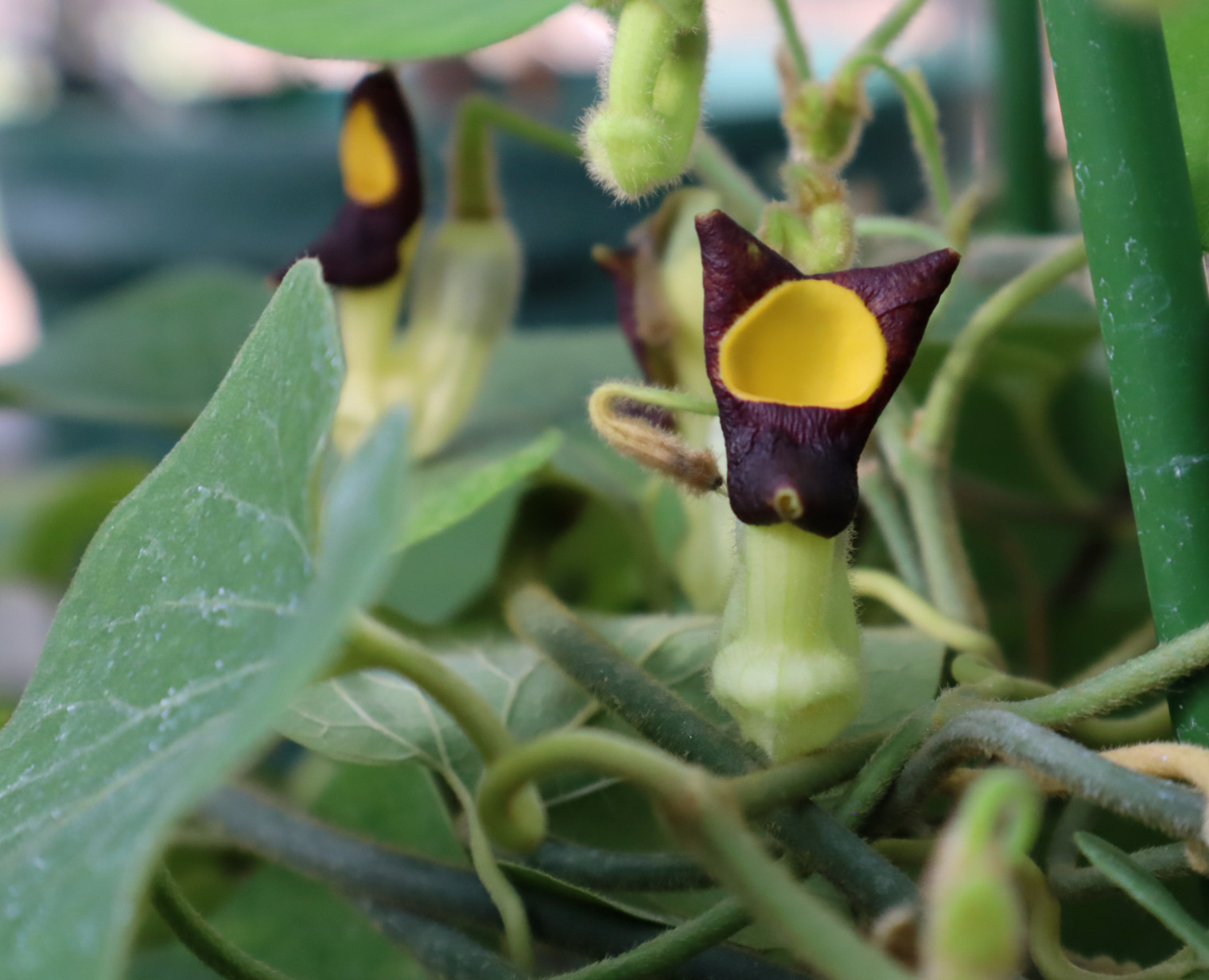 ウマノスズクサ属は、腎炎や尿路がんの原因となるアリストロキア酸を含む有毒植物です。一方でウマノスズクサ同様、本種もジャコウアゲハの食草としても知られます。ジャコウアゲハは、ウマノスズクサに含まれる毒成分を体内に蓄積し、鳥類などによる捕食を逃れていると考えられます。