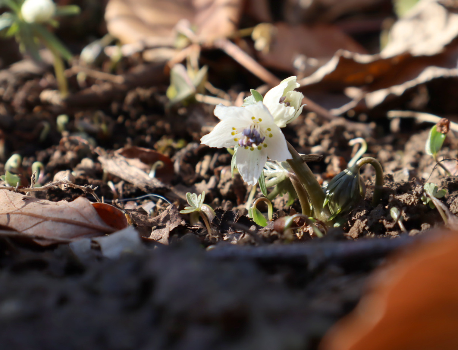早春に開花したセツブンソウは、3-4月には早くも結実、種子散布し、5月には地上部が枯れ、来春までの長い休眠期間に入る生活型をもっており、代表的な早春植物(スプリング・エフェメラル)として知られます。