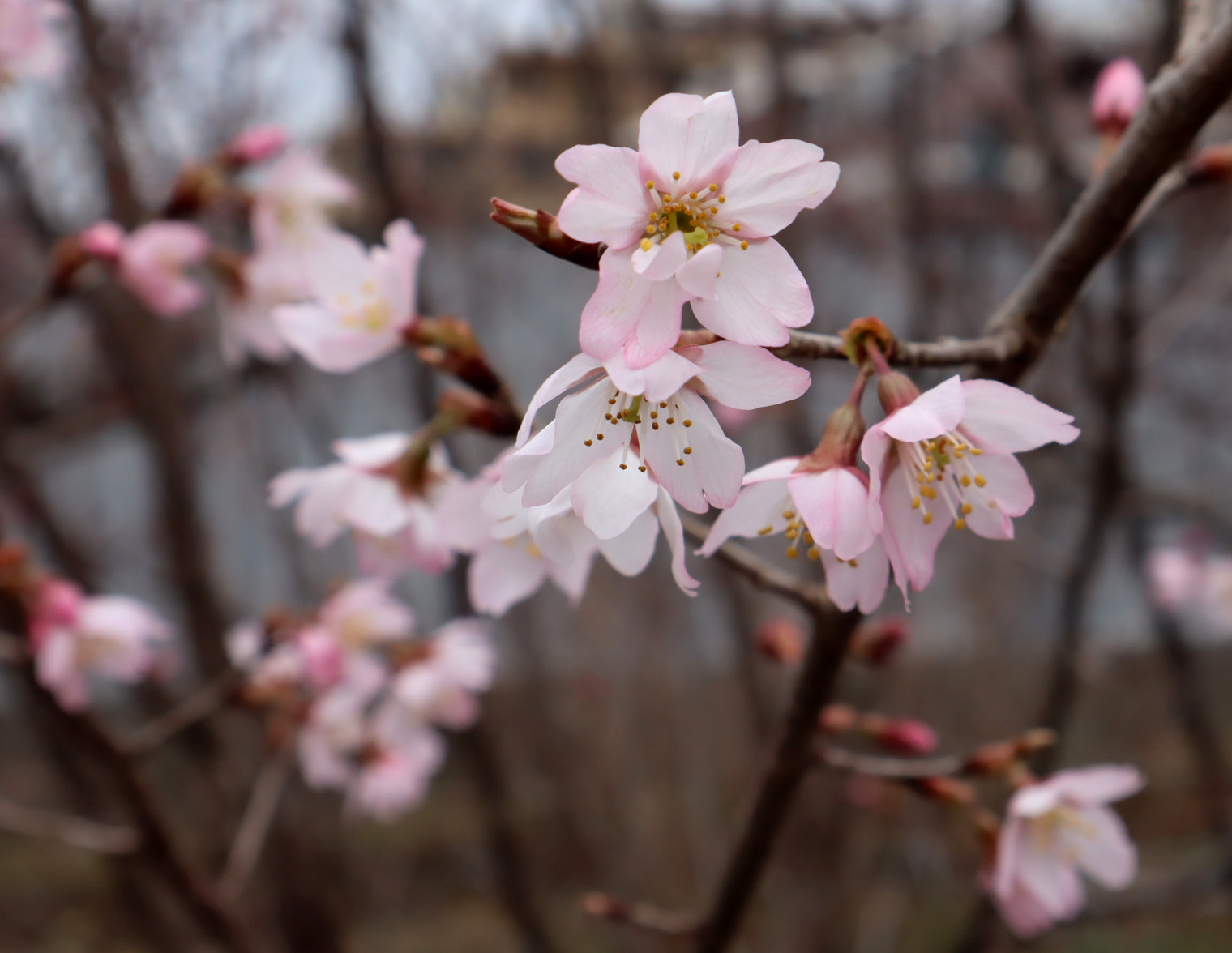 すらりと伸びた枝に咲く小ぶりな花が好まれ、また枝を切り取っても樹が弱らない性質もあって、切花(切枝)用のサクラとして多く流通します。促成開花させて、冬から早春の生花店などで見かけます。