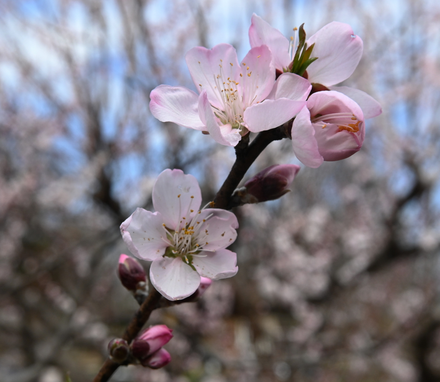 果物のモモと近縁な落葉高木です。硬い核の中にある種子を、種実類(ナッツ)として利用します。モモの果肉に相当する中果皮は成熟すると水分を失うため、食用にしません。 ヨーロッパへは紀元前500年ころに導入されたとみられ、近代19世紀末からは米国カリフォルニアで大規模に生産されるようになりました。 夏に乾燥する気候が適し、多雨な日本では果実・種子の生産が困難ですが、モモに似た大きく優美な花を楽しむことができます。 【原産地】西アジアから中央アジア