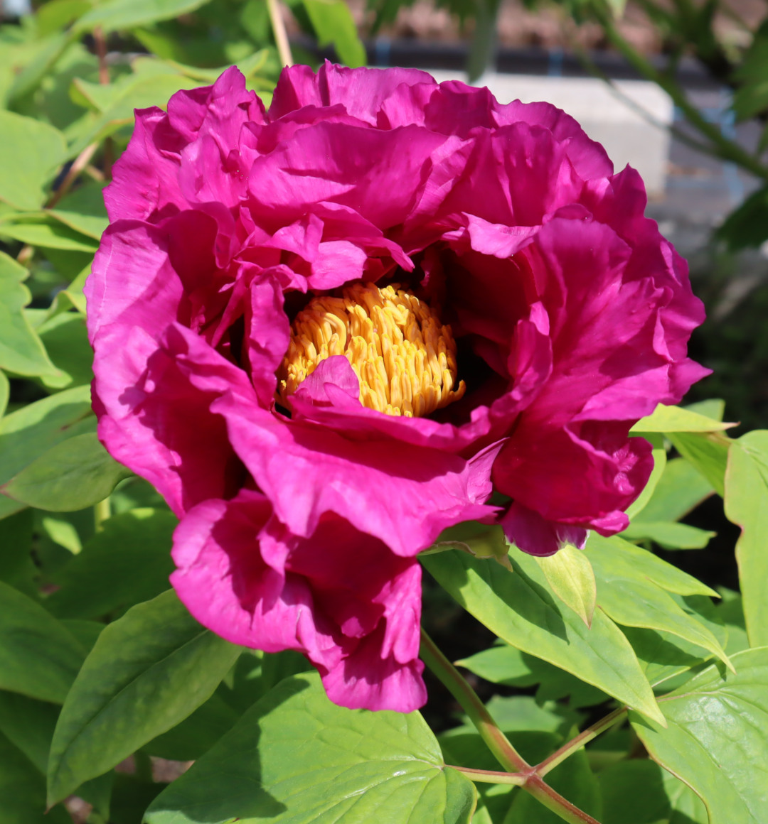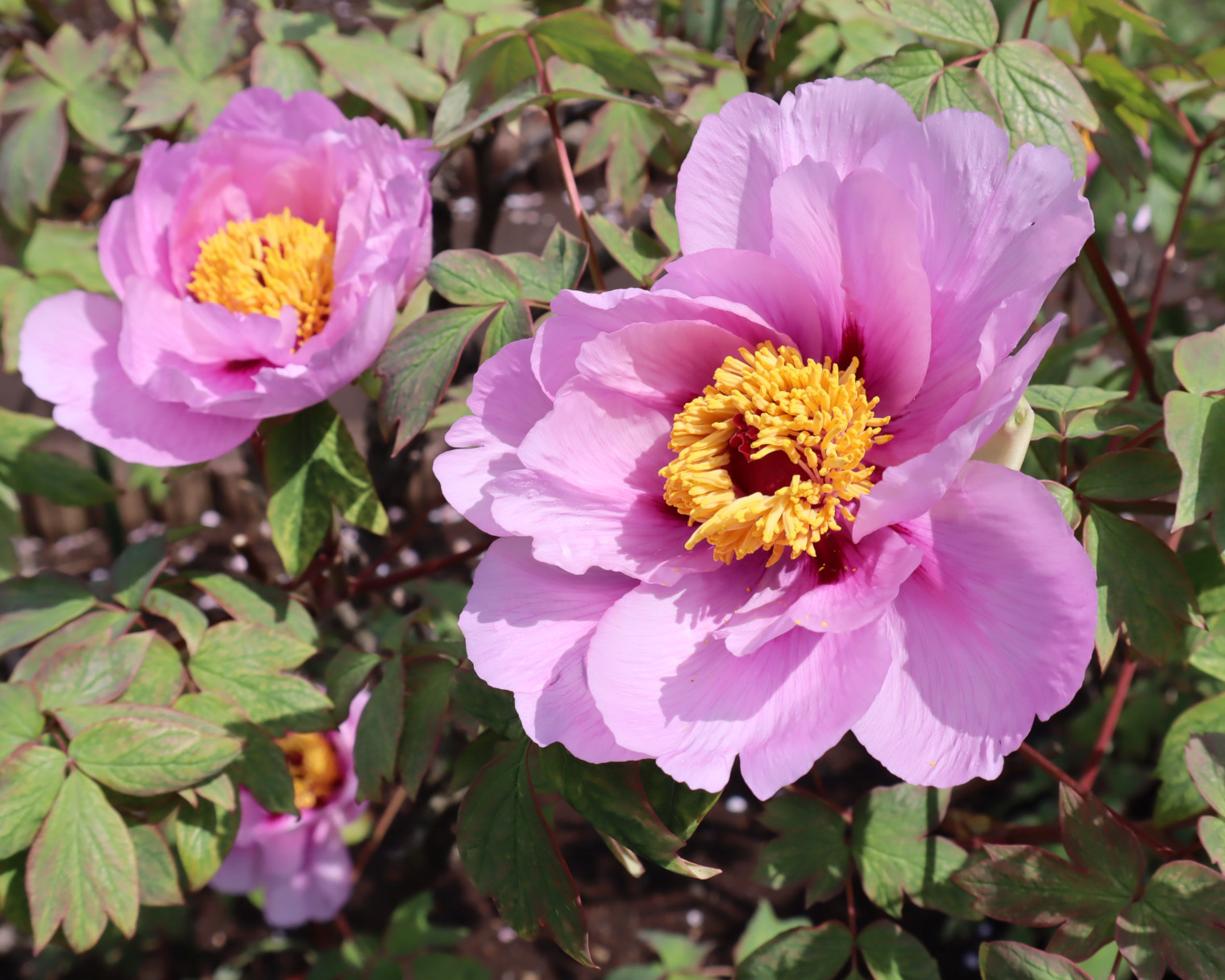 今年(2026年)は、やや早めの開花となりました。薬用品種のボタンも、園芸品種に負けず劣らず美麗な花を咲かせます。ただし、園芸品種に比べて花の盛りが短く、見頃の期間は概ね1週間前後とみられます。