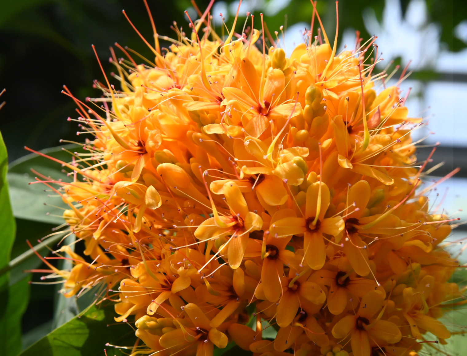 2月に咲いた温室のムユウジュが、再び咲き出して見頃となっています。 漢字では「無憂樹」、仏教の三大聖木(ムユウジュ、インドボダイジュ、サラソウジュ)のひとつとされ、ムユウジュの木の下で釈迦が誕生したと伝えられています。 インドでは寺院に植えられ、また熱帯の各地では街路樹としても植えられています。 【別名】アソカノキ 【原産地】インド、東南アジア