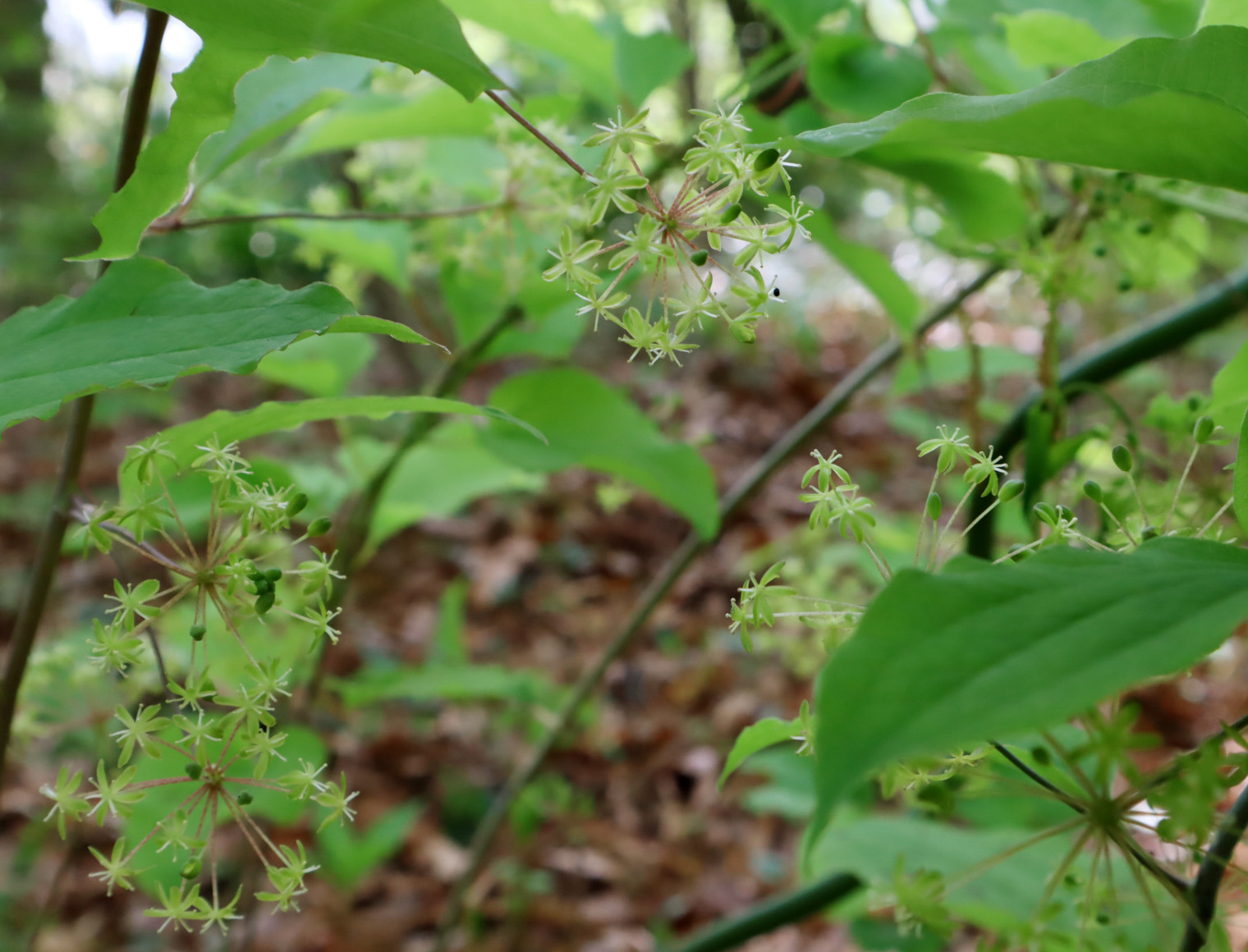 図鑑類では、本種は出始めのころ茎が立つので「立ちシオデ」という説明が多く見受けられます。しかしシオデも、芽生えの初期は自立していますし、両種とも伸びれば巻きひげで絡みつく蔓性である点は同じですので、草姿は両者の有力な区別点にはなり得ないと考えられます。