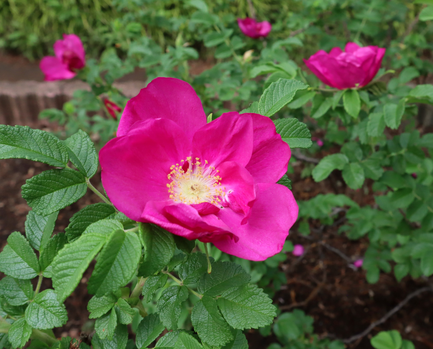 花には、ダマスクローズにも似た強い芳香があり、香料として用いられます。夏に赤く熟す果実(偽果)は中のタネ(これが真の果実)を取り除くと、食用となります。