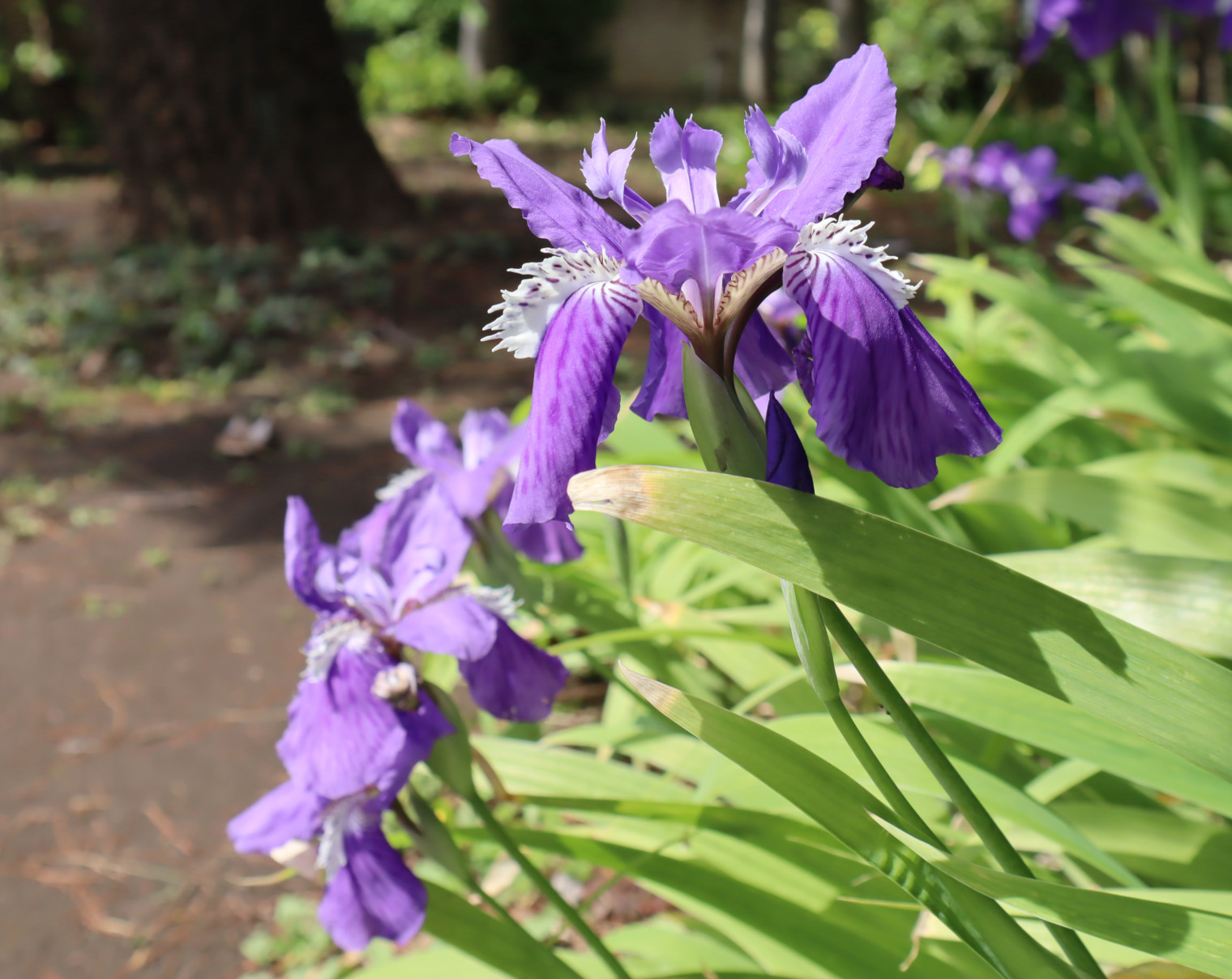 外花被片の中央から立ち上がる、白い「とさか」状の突起が特徴です。アヤメやカキツバタにはこのような突起が無いので、花の形からも区別ができます。